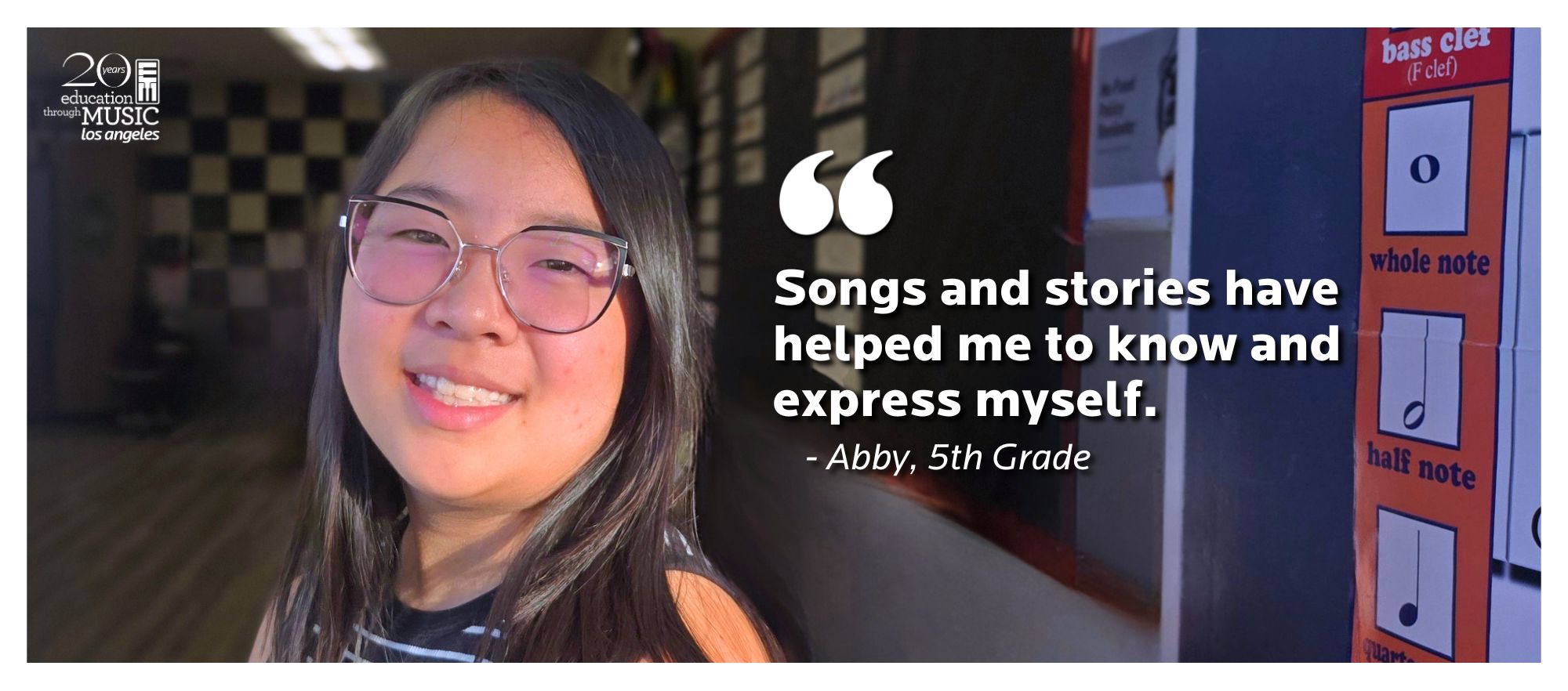 Thank you for your dedication to providing equity and access to high-quality music education in under-resourced schools across Los Angeles County. Your commitment has given Abby, a fifth grade choir student, the space to fully express and share themselves with the world. Abby believes: